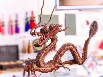 一張普通的紅紙,經(jīng)過折疊、裁剪,剪刀咔嚓,紙屑飄落,一條栩栩如生的龍逐漸顯現(xiàn),這是安州剪紙代表性傳承人汪洪萍的剪紙作品——《騰飛》。[