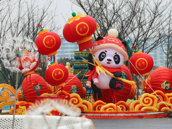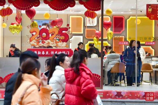 蛇年春節(jié)將至,綿陽(yáng)城區(qū)商圈裝扮一新,節(jié)日消費(fèi)逐漸升溫。[