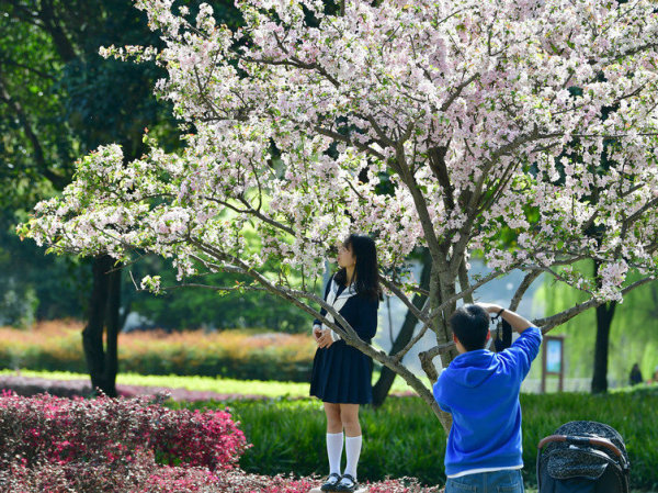 三月春風(fēng)暖,繁花次第開(kāi)。綿陽(yáng)城市公園廣場(chǎng)和沿湖步道呈現(xiàn)出一派綠意盎然、五彩斑斕的春日景象。 [