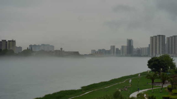 7月8日傍晚時(shí)分,雨水暫歇,在綿陽(yáng)涪江河面上,霧靄繚繞,兩岸的高樓、橋梁在飄渺的氤氳里若隱若現(xiàn),就像浮在空中一般,宛如仙境。 [