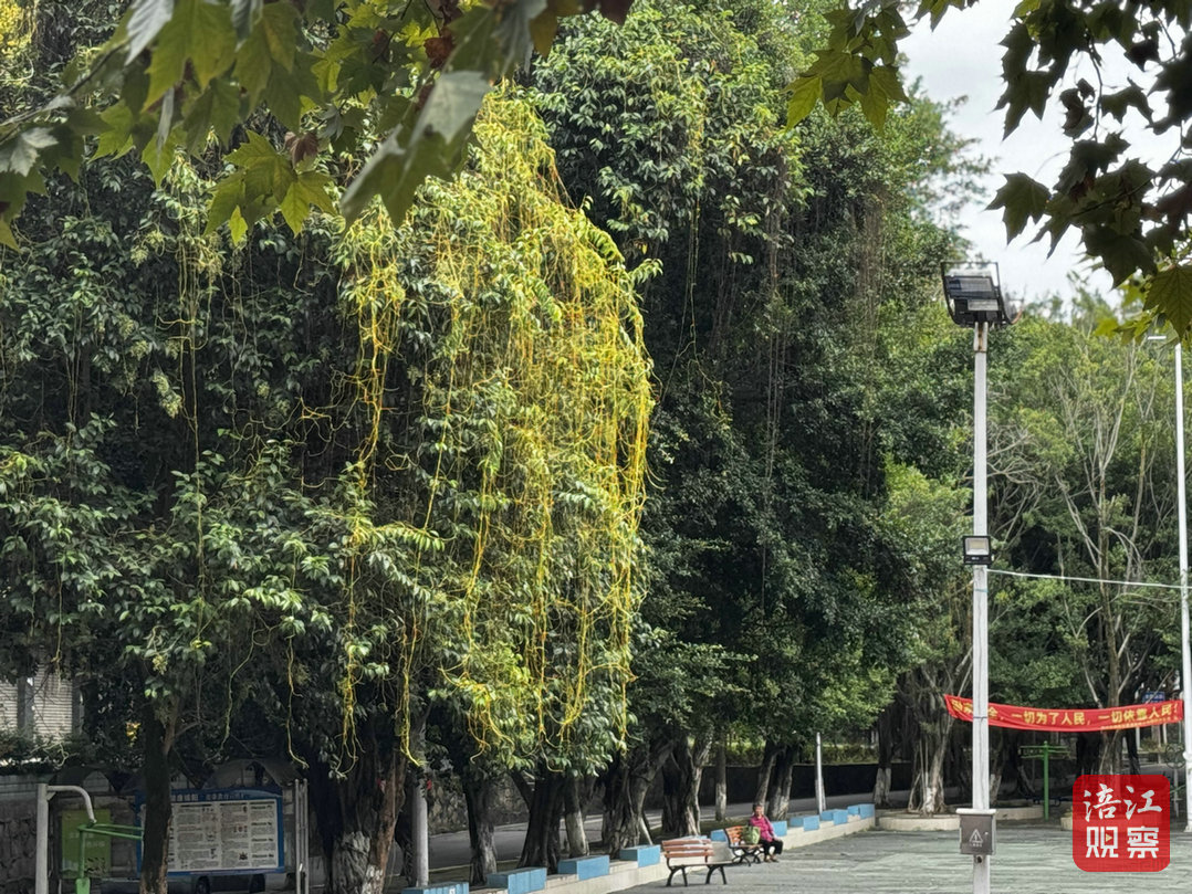 近日,有市民反映,在城區(qū)南山中學(xué)、126文化創(chuàng)意園等地的行道樹上,掛有黃綠色的藤絲,影響景觀效果。對此,記者進(jìn)行了走訪。[