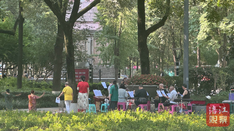 朝陽初升, 綿陽人民公園昭烈讀書樓外的廣場樹蔭處早已熱鬧非凡。剛過上午8點(diǎn),此起彼伏的音樂聲便響徹四周。大叔阿姨們踩著鼓點(diǎn)起舞,架起樂器演奏,歌聲、樂聲交織。然而,這處活力的公共空間,卻因“分貝”問題,成為焦點(diǎn)。[