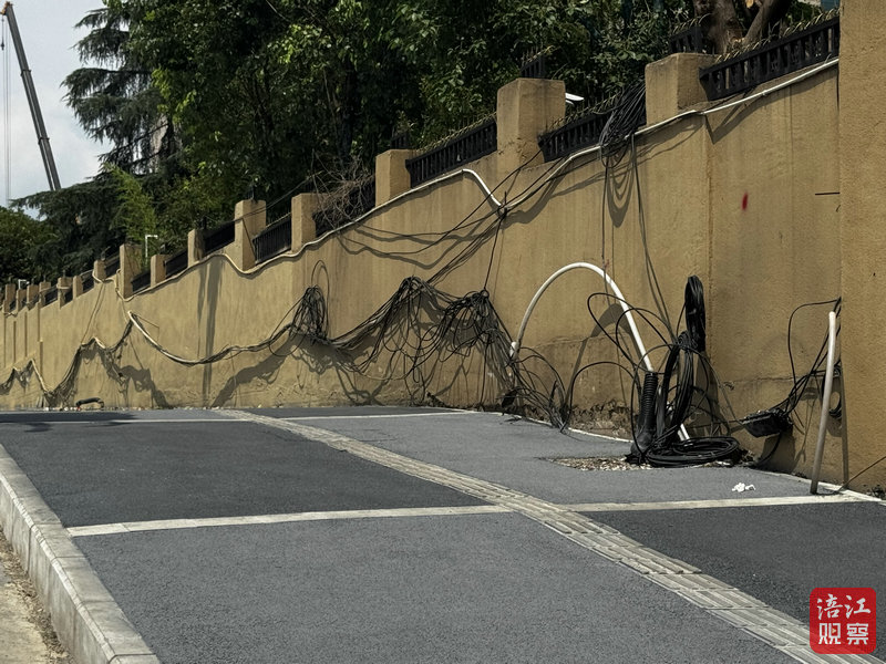 近日,有市民反映,綿陽外國語學(xué)校旁的道路正在實(shí)施提升改造工程,但在道路一側(cè),大量線纜纏繞裸露、“掛”在墻面,景象雜亂。不少市民疑惑:人行道已經(jīng)改造完成,為何線纜沒同步入地?[