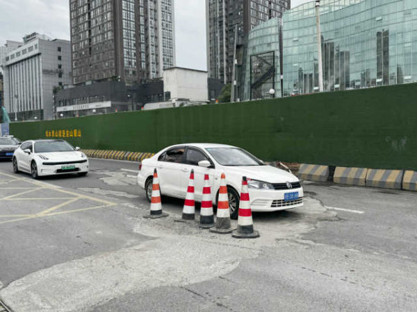 “道路坑洼十分嚴重,稍不注意就會刮車輛底盤?!薄氨緛砭投?,再加上道路不平整,導致車輛行駛得更慢。”近日,有市民反映,綿陽火車站前的道路有多處坑洼,影響通行。 [