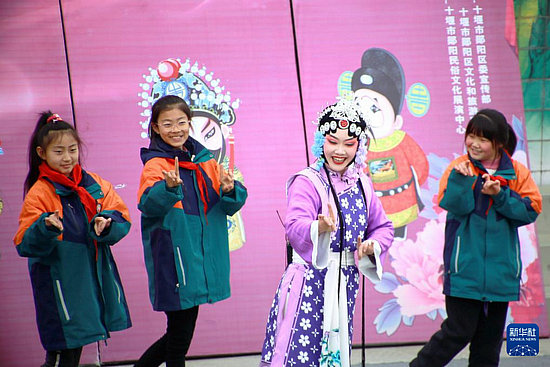 3月26日,在湖北省十堰市鄖陽區(qū)城關(guān)鎮(zhèn)第一完全小學(xué),演員指導(dǎo)學(xué)生進(jìn)行形體訓(xùn)練。 世界戲劇日即將到來,各地學(xué)校開展“戲劇文化進(jìn)校園”主題活動(dòng),通過傳統(tǒng)戲劇表演,引導(dǎo)學(xué)生學(xué)習(xí)戲劇知識(shí)、感受傳統(tǒng)戲劇文化的魅力。[