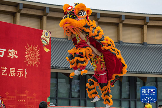 1月22日,在重慶市云陽縣舉辦的2024年民俗展演暨非遺傳承技藝展示活動現(xiàn)場,演員在進(jìn)行舞獅表演。 春節(jié)臨近,各地張燈結(jié)彩,迎新春活動豐富多彩,到處洋溢著濃濃的年味。[