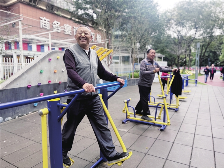 七十歲的李大爺,每天的晨練在離家一百多米的范圍即可完成。從他居住的翠滿庭小區(qū)(位于涪城區(qū)躍進(jìn)北路)到小區(qū)旁口袋公園健身區(qū),不過百步之遙。在過去,他從小區(qū)到五一廣場鍛煉,趕公交車需經(jīng)過四站,耗時半小時。 [