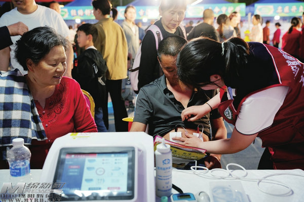 4月15日,梓潼縣以“逛健康夜市,享幸福生活”為主題的健康夜市在濱江公園開市。 [