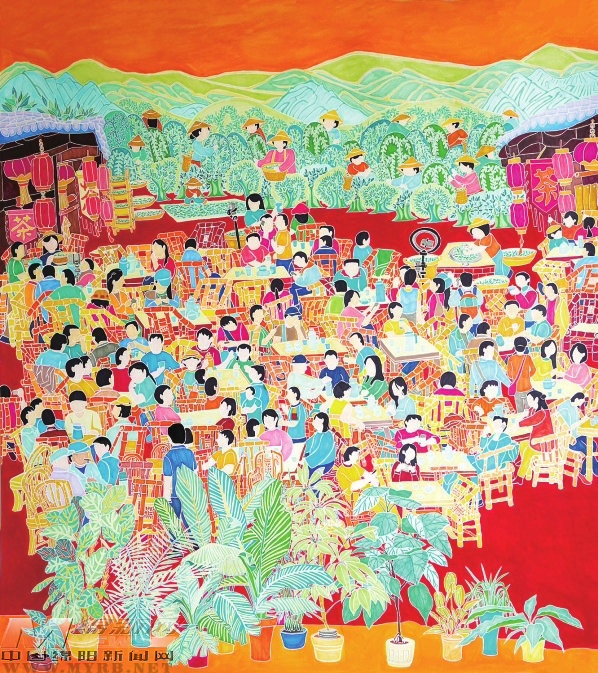 由文化和旅游部公共服務(wù)司、國家博物館主辦的“大地繪彩——2025年農(nóng)民畫大展”,日前正在國家博物館展出。綿陽鹽亭縣文化館楊若雪的《茶香傳薪新·享茶品豐饒》、陳維兵的《幸福果農(nóng)》雙雙入展。[