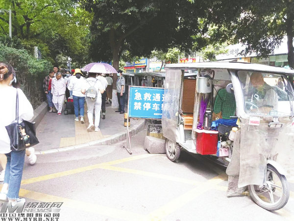 近日,涪江觀察《三輪車占道攬客,小攤擺上人行道!醫(yī)院外生命通道遭遇“腸梗阻”》一文,報(bào)道了綿陽市中心醫(yī)院急診科前三輪車占道攬客、人行道上小商小販擺攤賣貨,給生命通道添堵一事。 [
