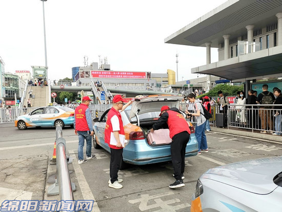 “五一”假期,綿陽各大車站和機(jī)場迎來客流高峰,為保障乘客順利平安出行,近百名出租行業(yè)志愿者奮戰(zhàn)在交通一線,幫助乘客搬運(yùn)行李、引導(dǎo)乘客有序乘車,用熱情周到的服務(wù)溫暖乘客出行路。 [