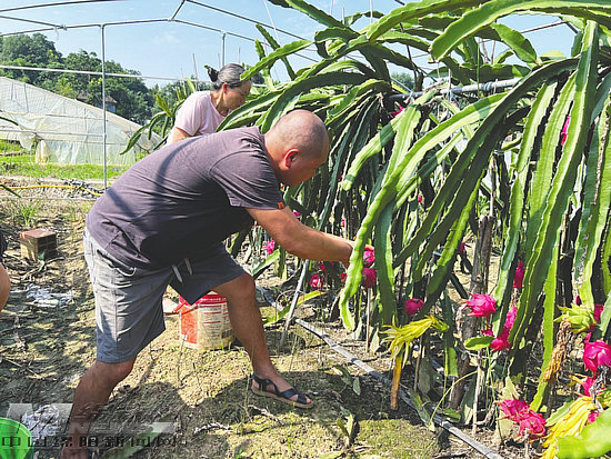 當(dāng)前正值火龍果收獲季。日前,記者在涪城區(qū)豐谷鎮(zhèn)興隆溝村看見,一株株火龍果樹整齊排列,一個個色澤艷麗、果實飽滿的火龍果垂掛在蔓條之上,宛如“火焰”,長勢良好。 [