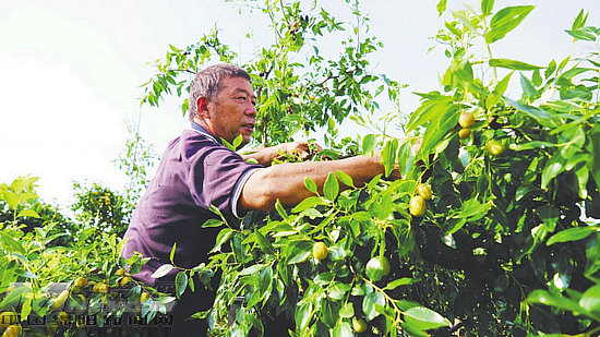 八月,正值瓜果飄香的季節(jié),作為中國米棗之鄉(xiāng)的三臺縣新德鎮(zhèn)又迎來豐收時刻。一樹樹甜香的米棗吸引客商紛至沓來。 近日,記者走進嶄山村看見,門前屋后、漫山遍野的棗樹掛滿一串串成熟的米棗,壓彎了枝頭。 [